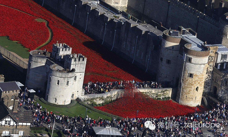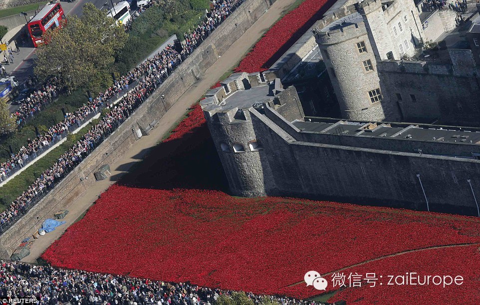 伦敦塔摆放的888246朵罂粟花几乎悉数就位,被鲜红席卷了的大地萦绕着伤感的气息,营造出的红色海洋般的景致让今日的伦敦看起来格外与众不同。两周时间内这项宏大的纪念仪式将全部竣工,以此纪念在一战中逝去的共和国士兵们。每朵陶瓷罂粟花都是一段伤感的回忆,勾起人们关于战争中失去的那些不朽生命的思绪。